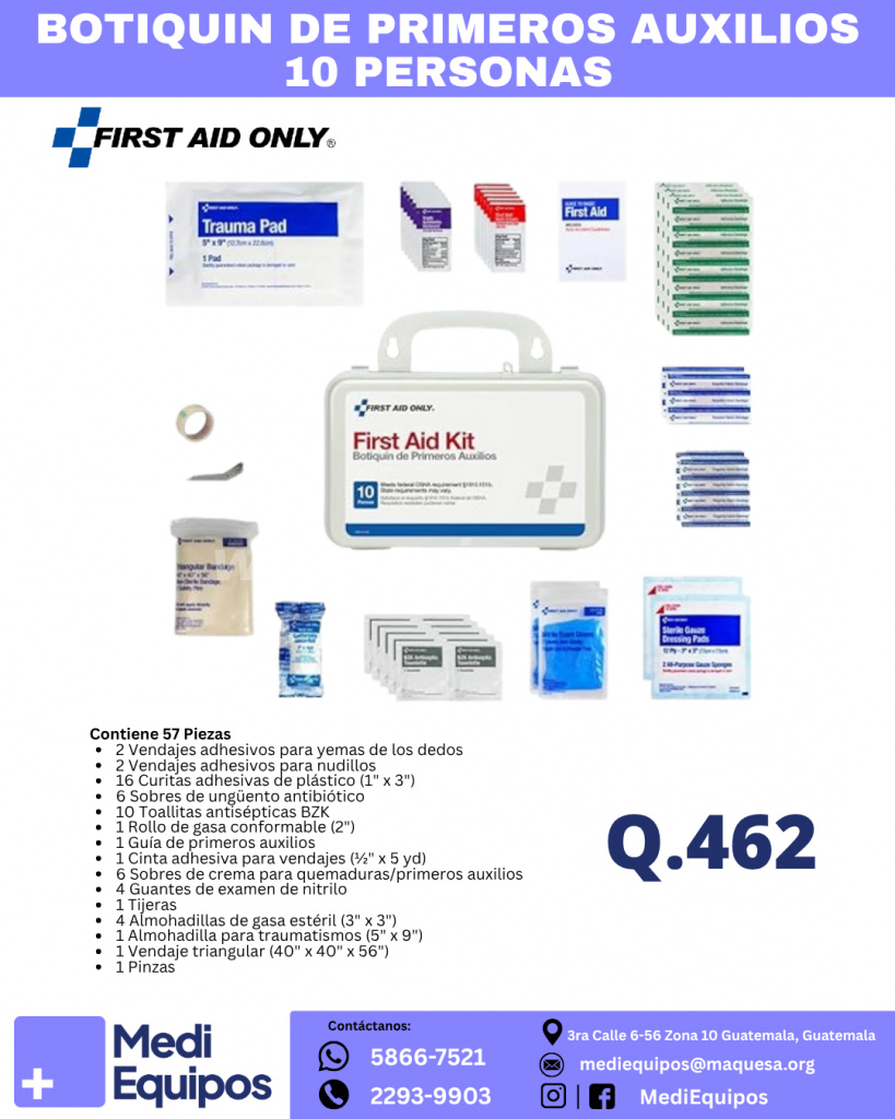 462 Quetzales - BOTIQUÍN DE PRIMEROS AUXILIOS (10 PERSONAS) (Ciudad Guatemala)